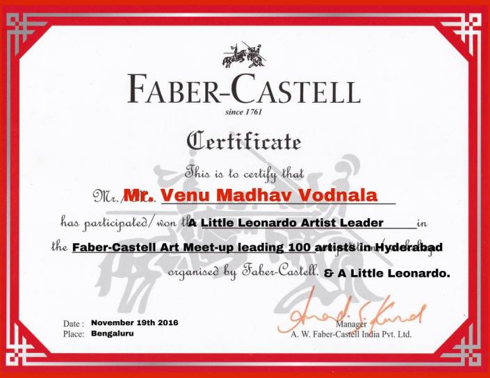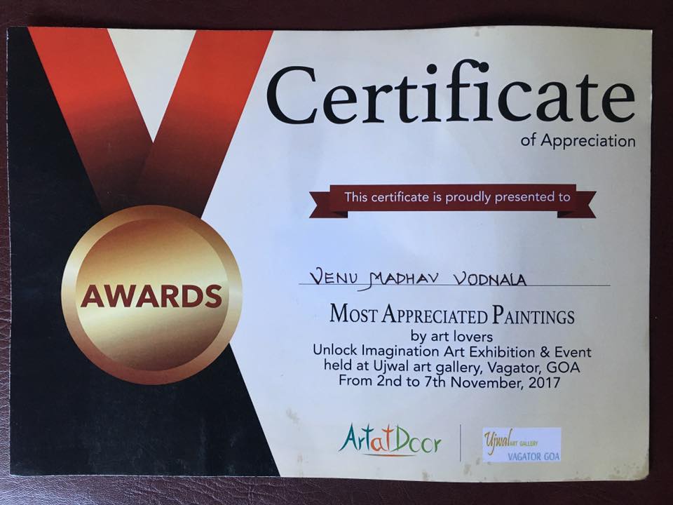 The ‘Most Appreciated Paintings & Best Art Work’ Award – Goa, November 2017