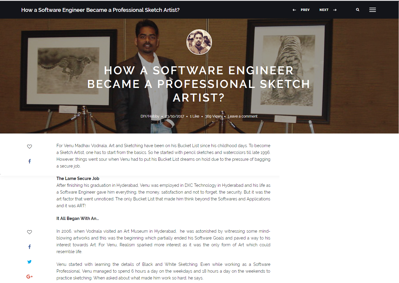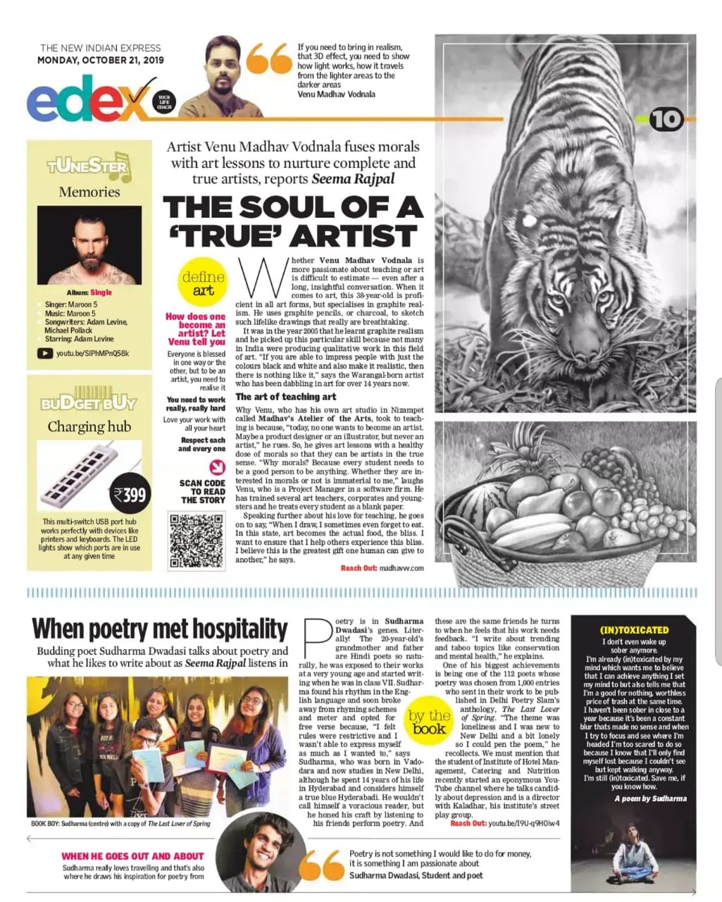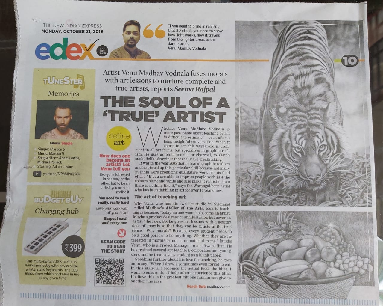 An exclusive article about me in ‘The New Indian Express’ Daily, ‘Edex’ edition 21st Oct., 2019